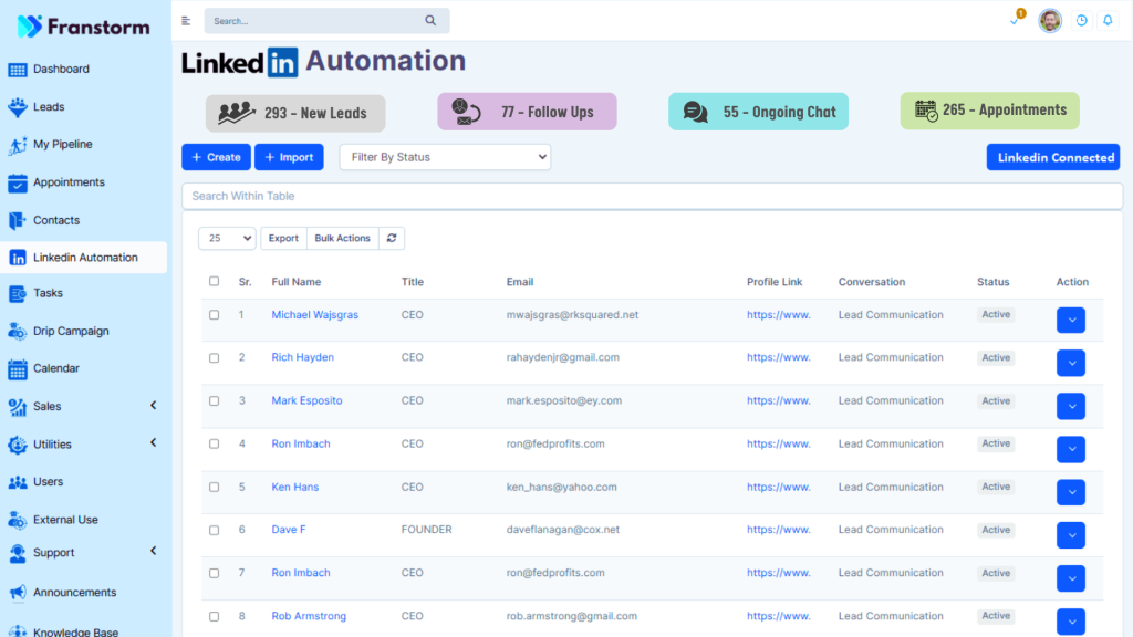 I've tried other CRM systems in the past, but Franstorm is on another level. The interface is clean and intuitive, making it easy for even the least tech-savvy among us to navigate. Plus, the automation features have saved me so much time. I can finally focus on building relationships instead of getting bogged down in administrative tasks.